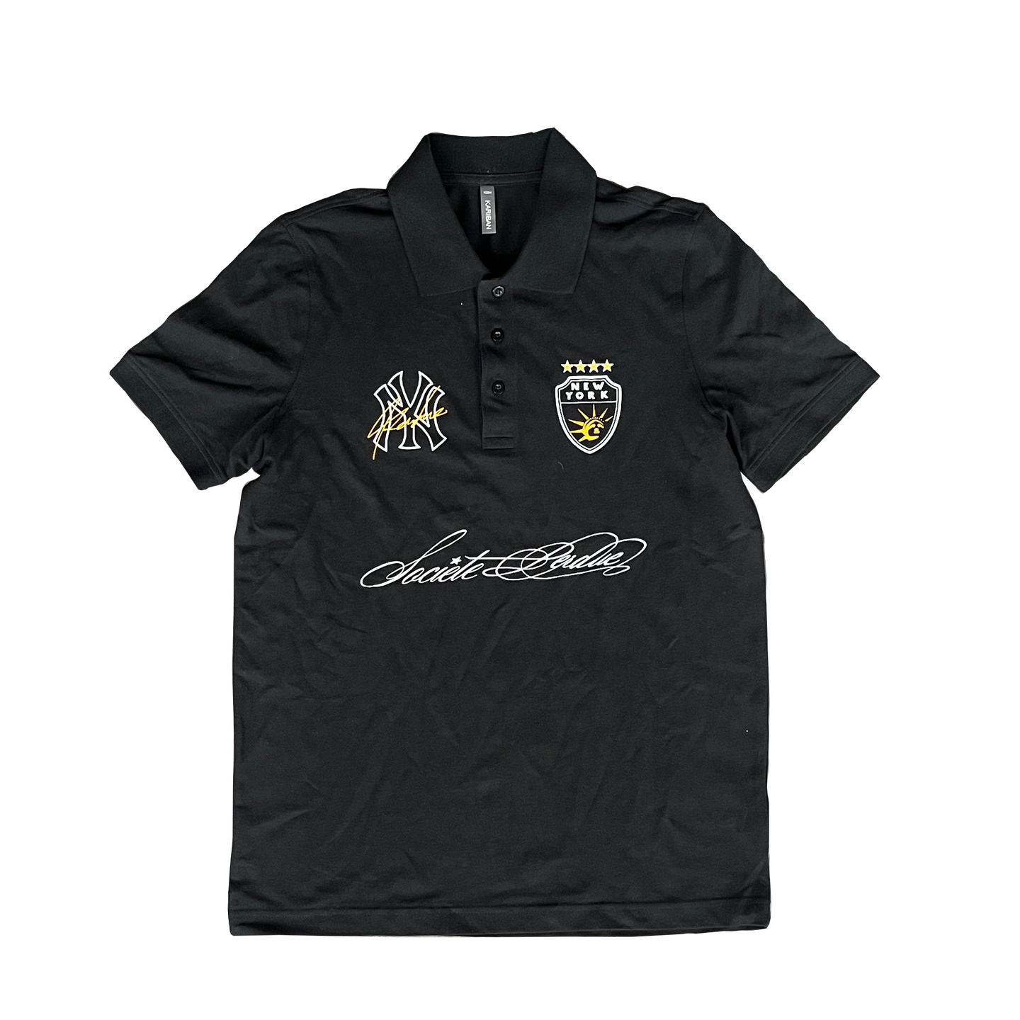Elevate your streetwear game with the Perdue Signature Polo. Featuring bold embroidered details including the iconic New York crest, gold accents, and our signature Société Perdue script, this black polo combines urban edge with premium style. Crafted for comfort and statement-making impact.